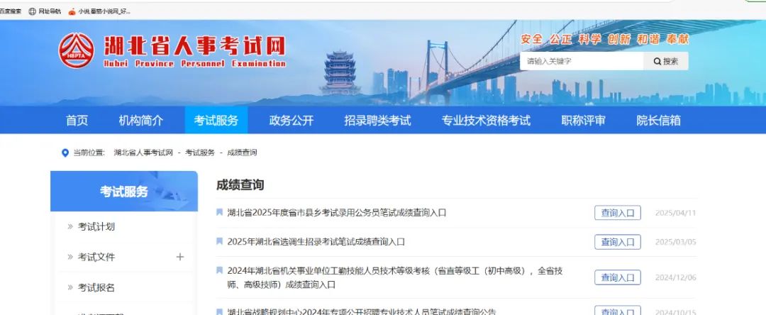 湖北省2025年度省市县乡考试录用公务员笔试成绩查询公告