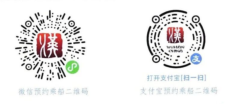 二、节日期间,航线14:00—20:00时段,武汉关码头、中华路码头实行微信、支付宝二维码预约登记乘船机制,进行高峰限流。出行前请提前预约,凭预约码现场核销后,方可进入码头购票(刷卡)乘船。请注意预约成功后再予以出行,避免现场预约不到难以购票乘船。
