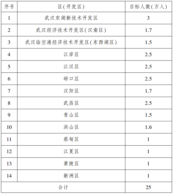 附件:1.2020年全市高校毕业生留汉就业创业目标任务分解表